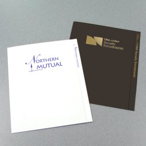 Not only will you look professional in their eyes — your name will always be right at their fingertips when you select this presentation folder style! The durable construction of the reinforced tab will last and last with continued use.